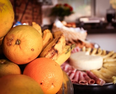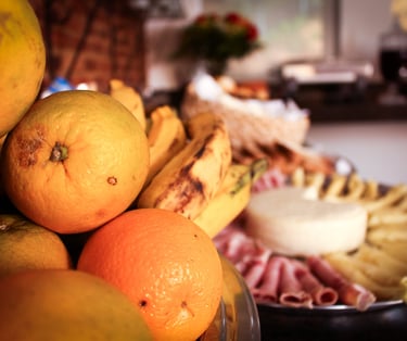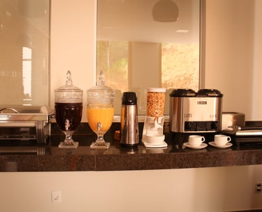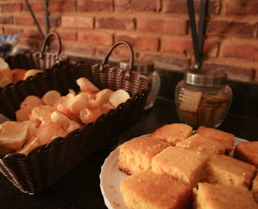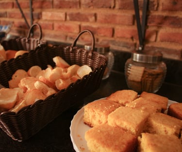 Na Pousada Primaz de Minas, o café da manhã é um ritual mineiro: mesas coloridas, frutas frescas, bolos caseiros, sucos naturais e aquele pão de queijo quentinho, feito na hora, que derrete o coração de qualquer viajante.